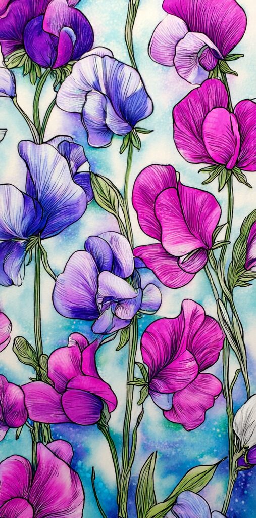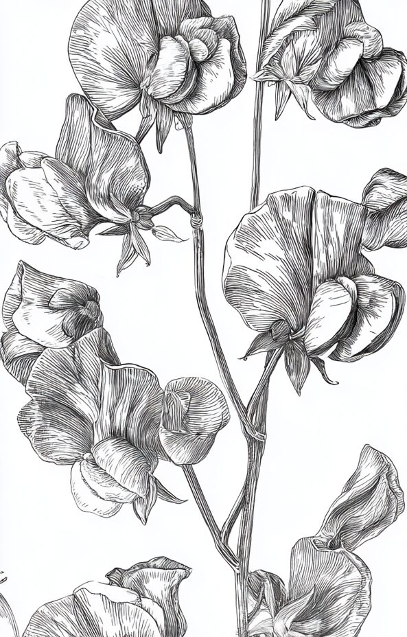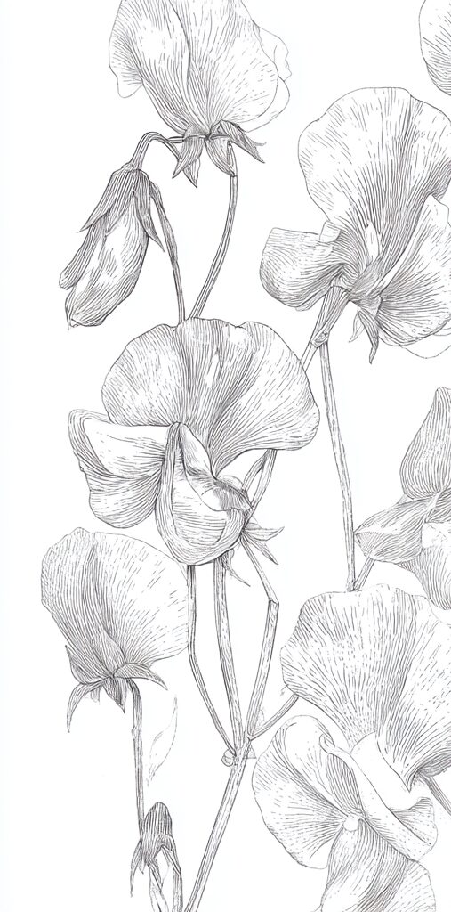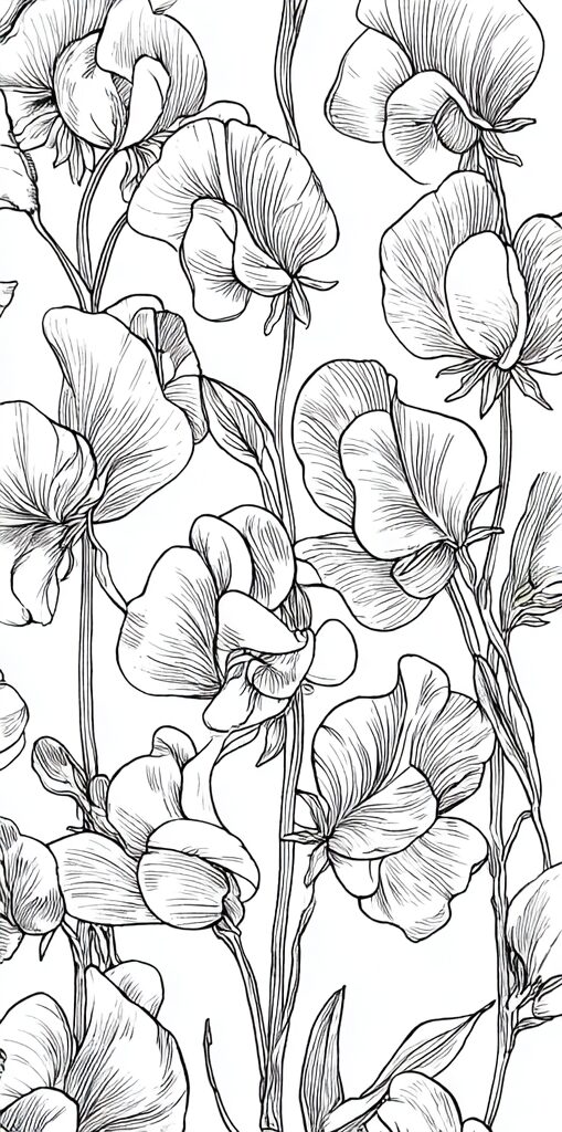 無料塗り絵:スイートピー(大人の塗り絵)