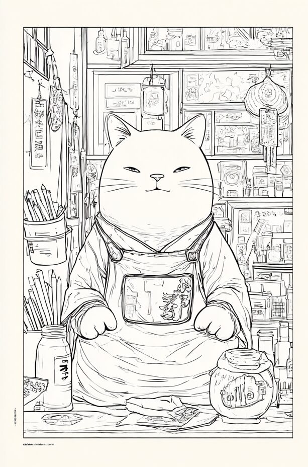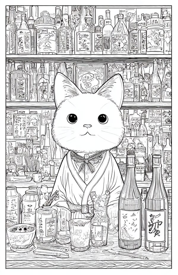 無料塗り絵:居酒屋猫店長ぬりえ(大人の塗り絵)