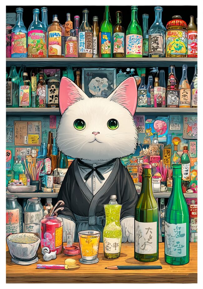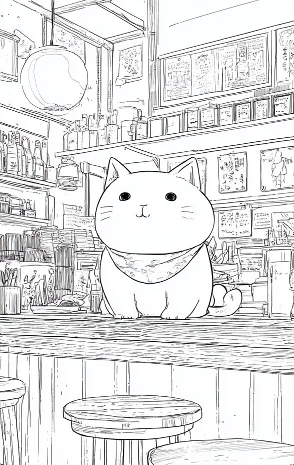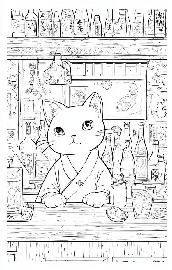 居酒屋猫店長ぬりえの塗り絵|無料塗り絵プリント/高齢者用