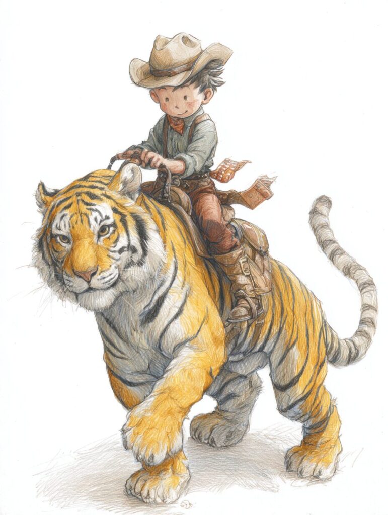 かわいいカウボーイと虎の塗り絵|無料塗り絵プリント/高齢者用