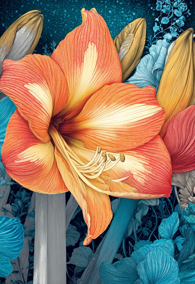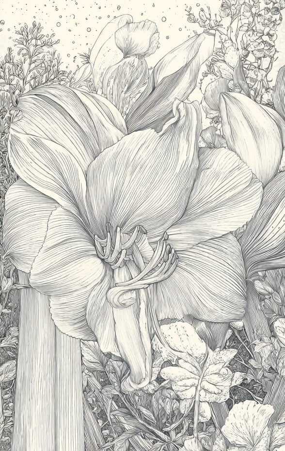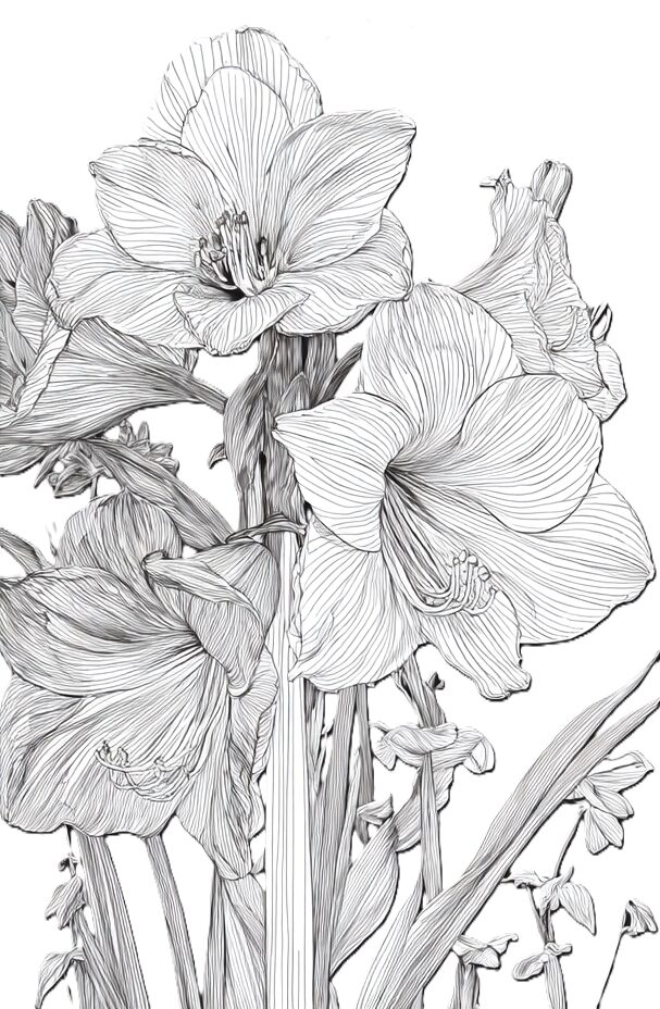 無料塗り絵:アマリリス(大人の塗り絵)