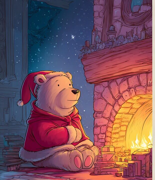 無料塗り絵:クリスマスを待っているクマ(大人の塗り絵)