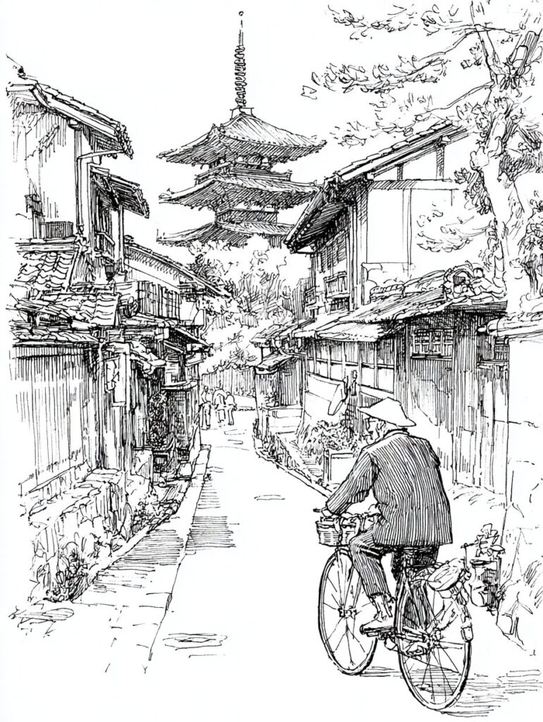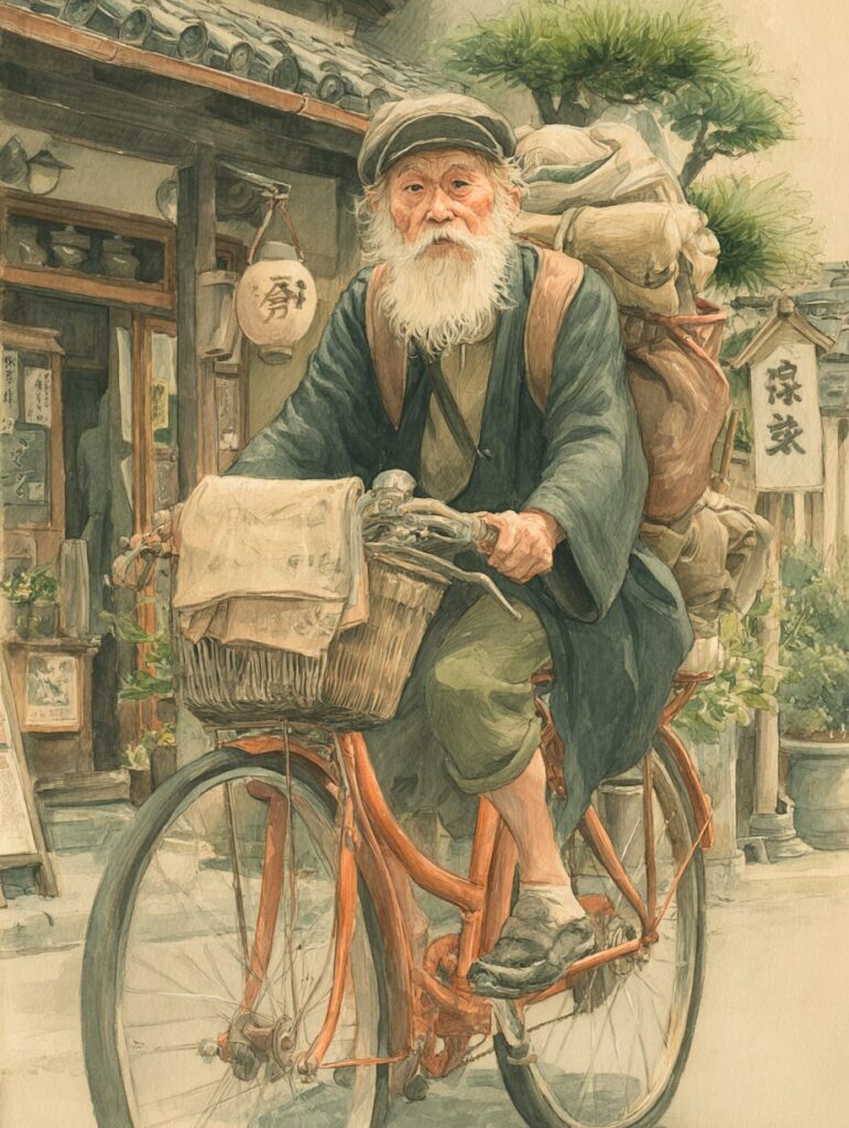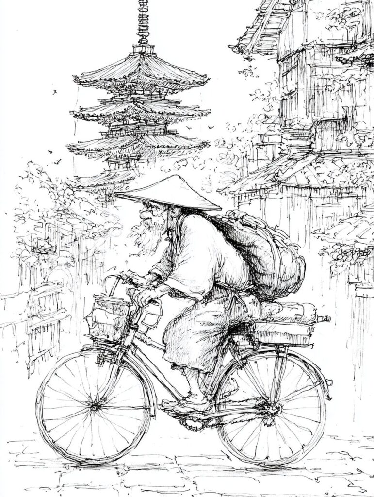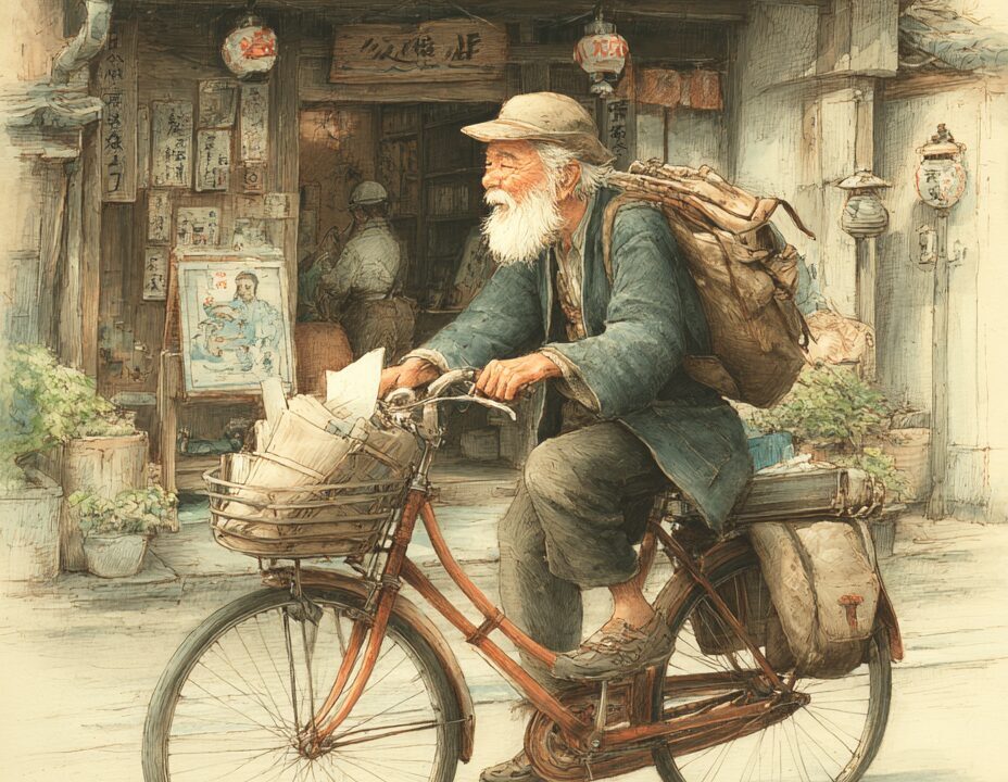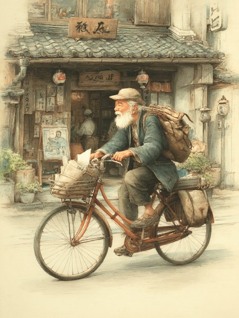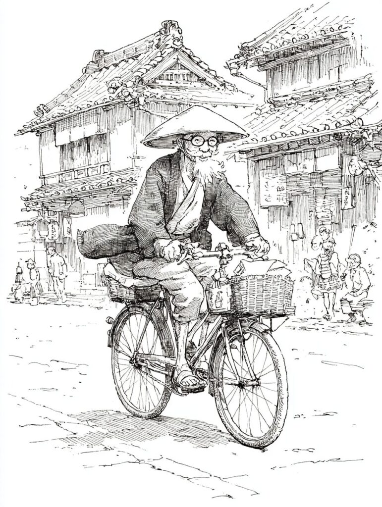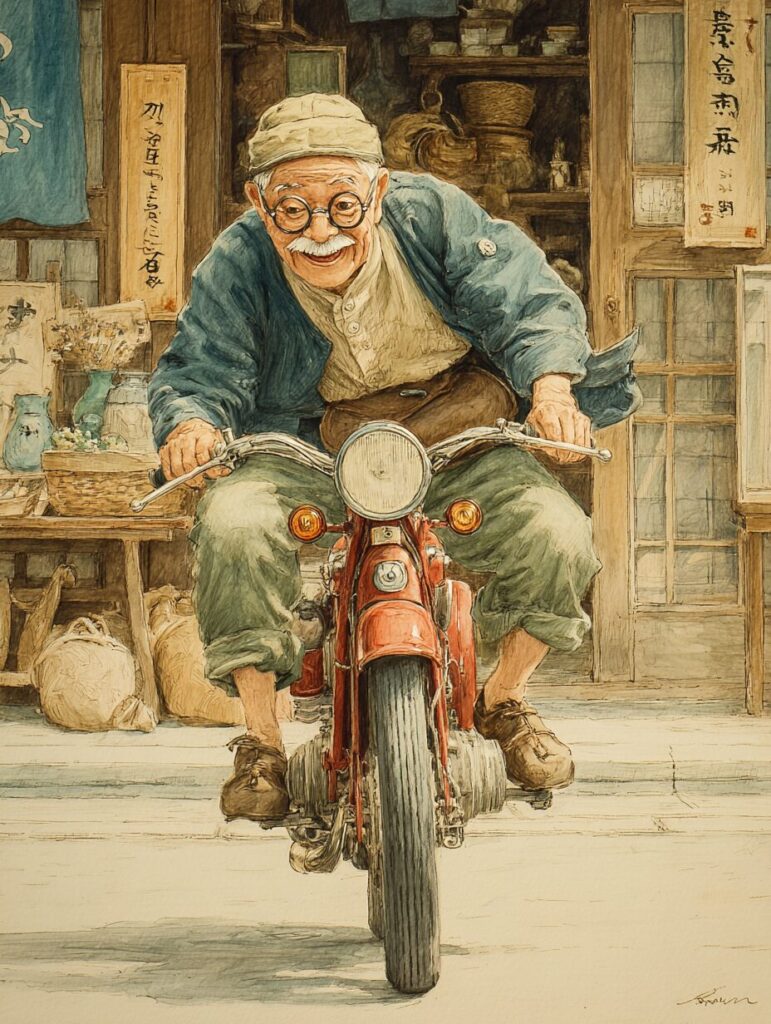 レトロなバイクで走るおじいさんの塗り絵|無料塗り絵プリント/高齢者用