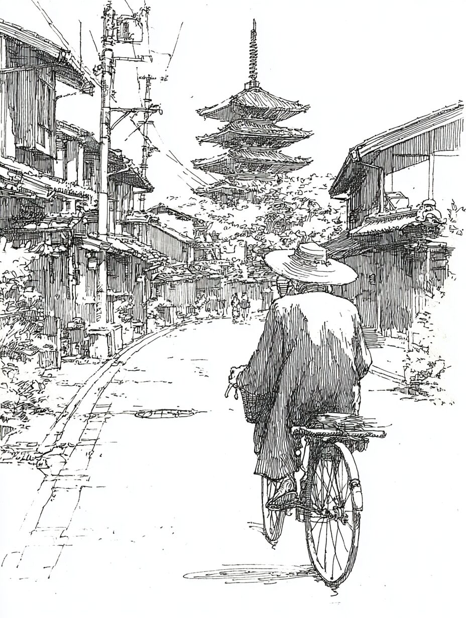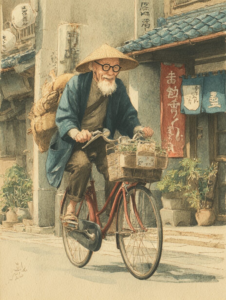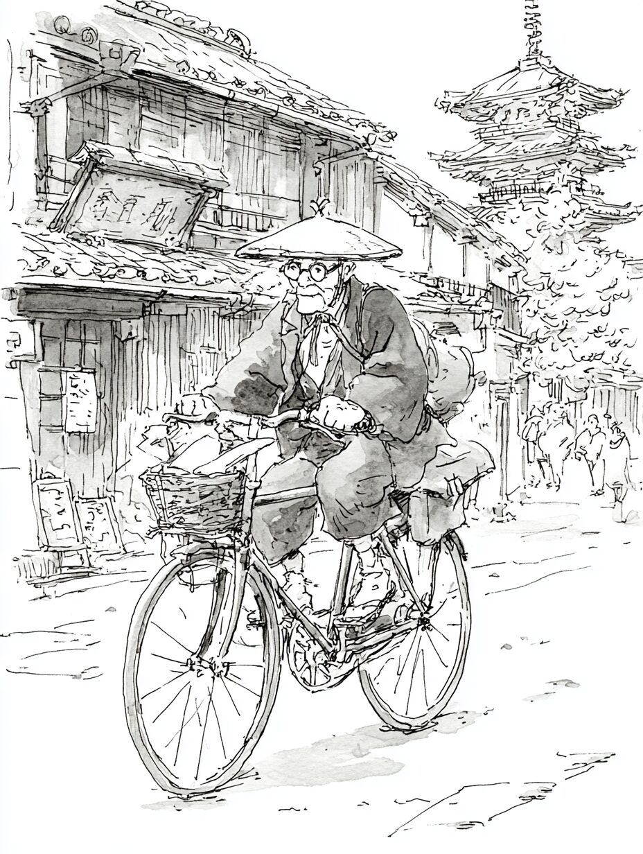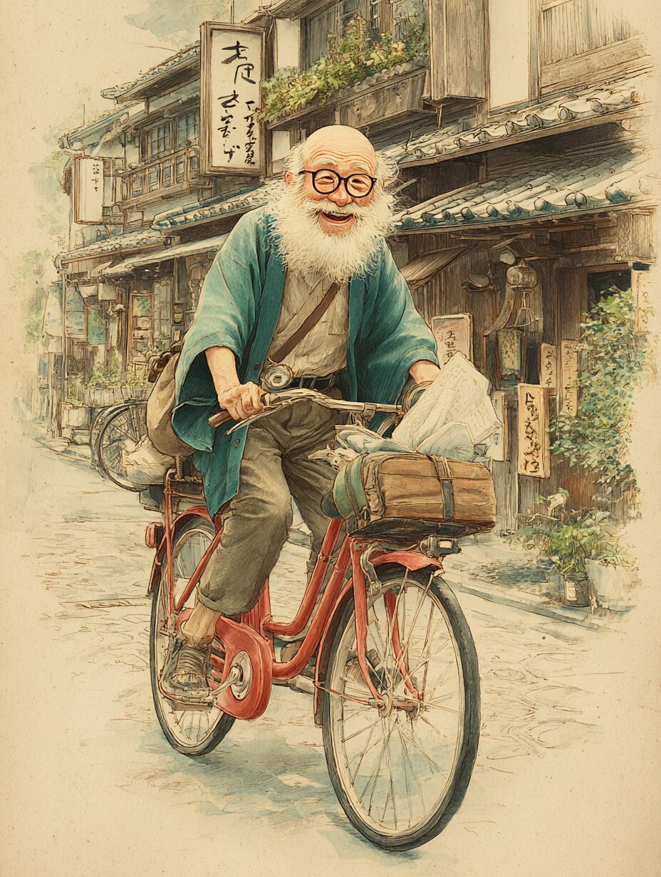 レトロなバイクで走るおじいさんの塗り絵|無料塗り絵プリント/高齢者用