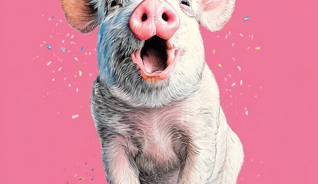 無料塗り絵:春の花畑で遊ぶ子豚(大人の塗り絵)