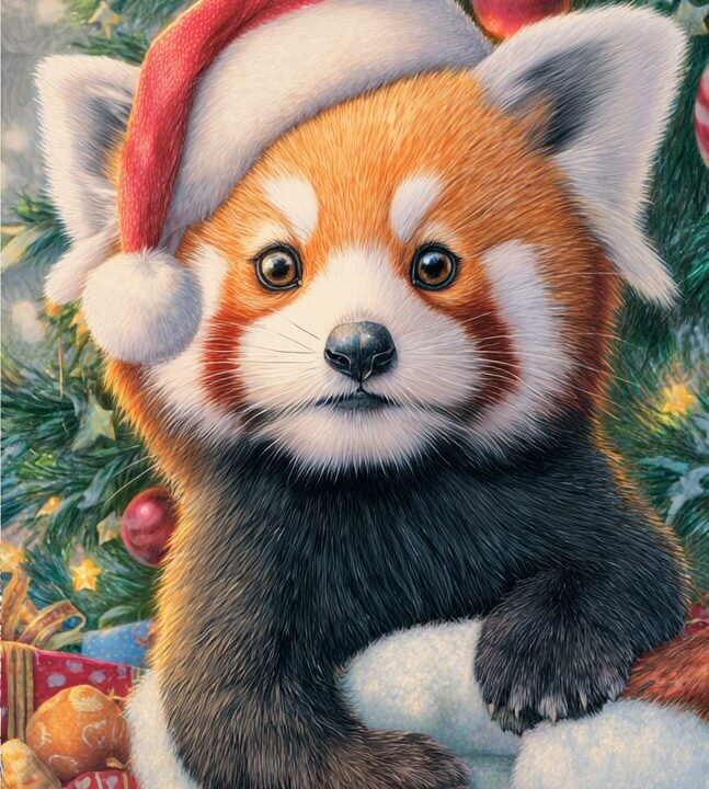 クリスマス衣装のレッサーパンダの塗り絵|無料塗り絵プリント/高齢者用