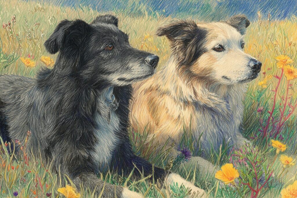 牧草地でくつろぐ犬の塗り絵|無料塗り絵プリント/高齢者用