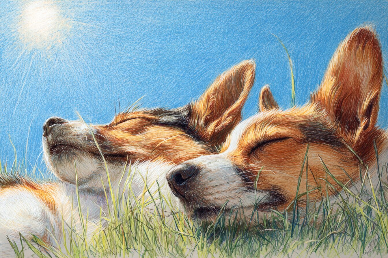 牧草地でくつろぐ犬の塗り絵|無料塗り絵プリント/高齢者用