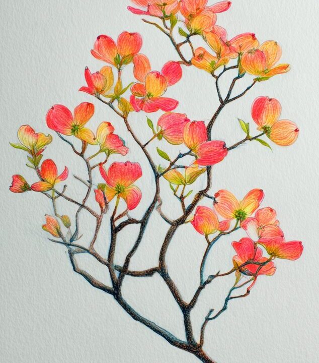 無料塗り絵:花水木(ハナミズキ)の塗り絵|無料塗り絵プリント/高齢者用 (大人の塗り絵)