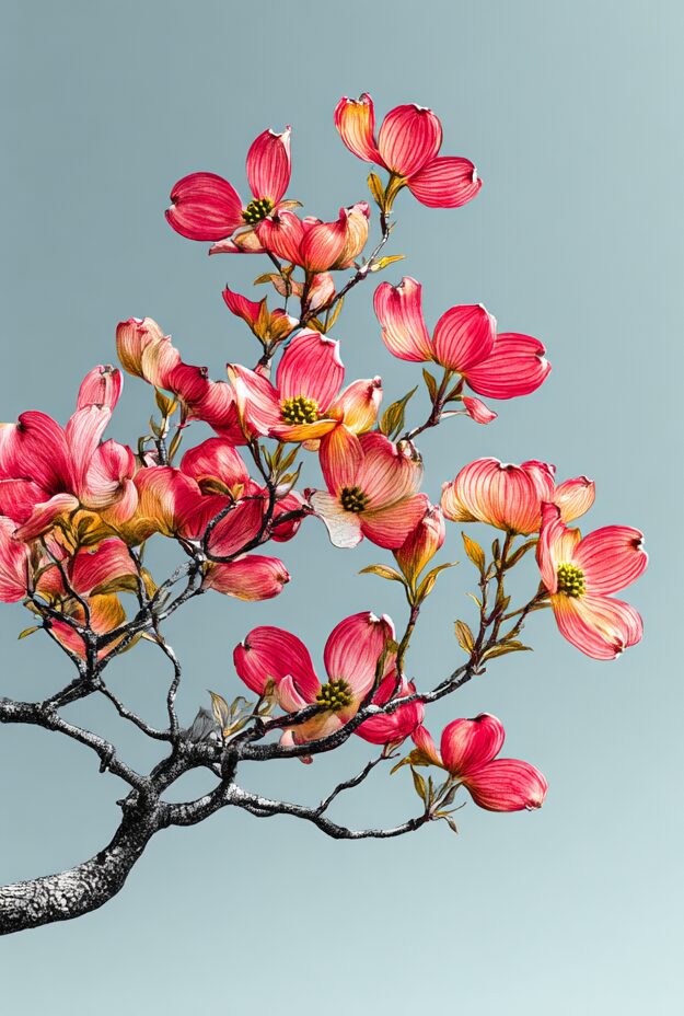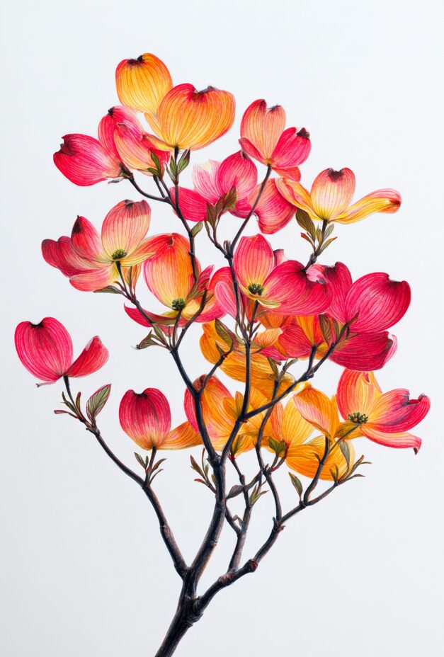 無料塗り絵:花水木(ハナミズキ)の塗り絵|無料塗り絵プリント/高齢者用 (大人の塗り絵)