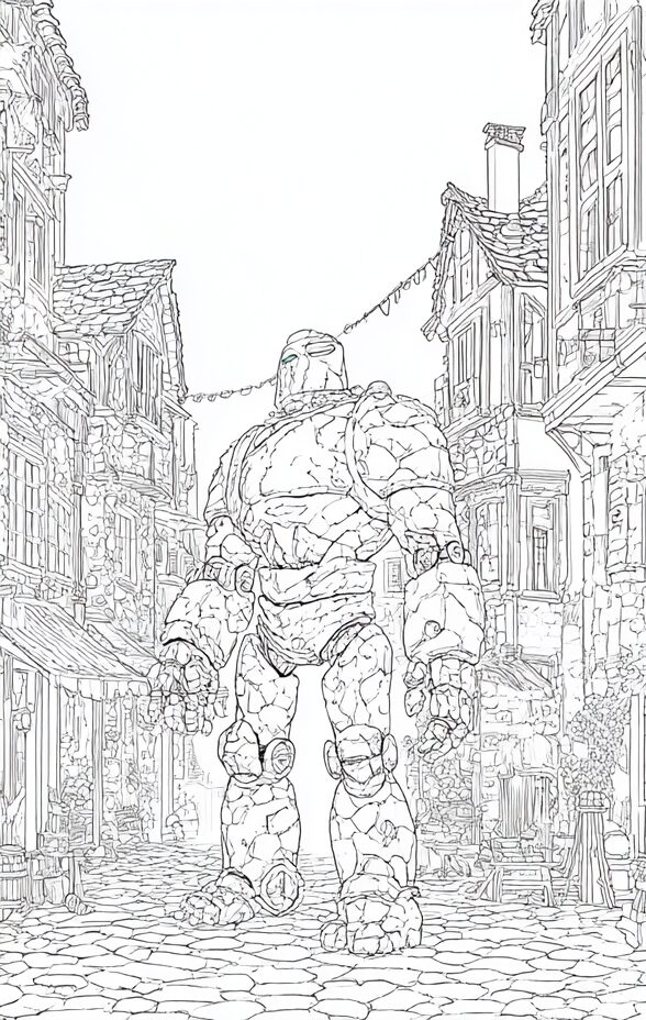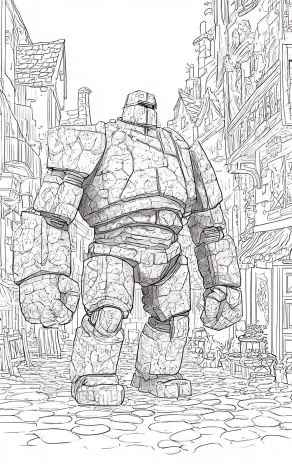 無料塗り絵:ファンタジーゴーレム(大人の塗り絵)