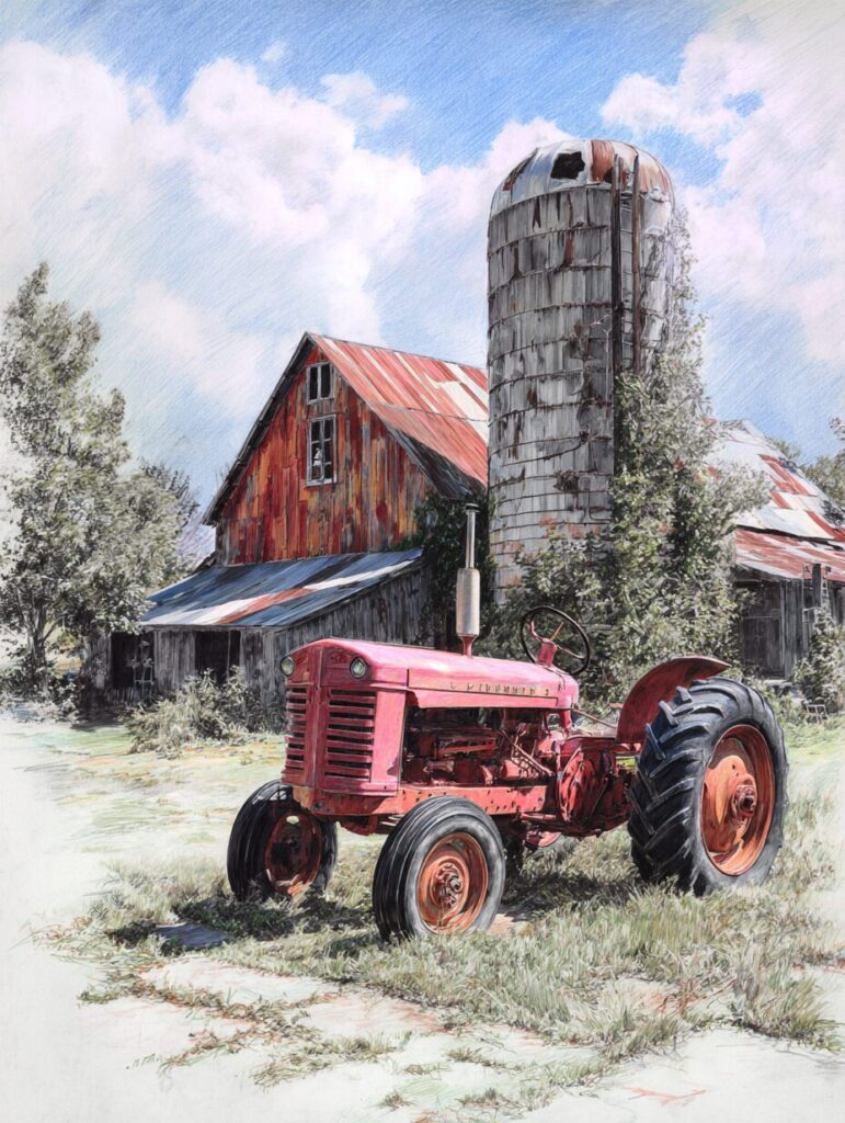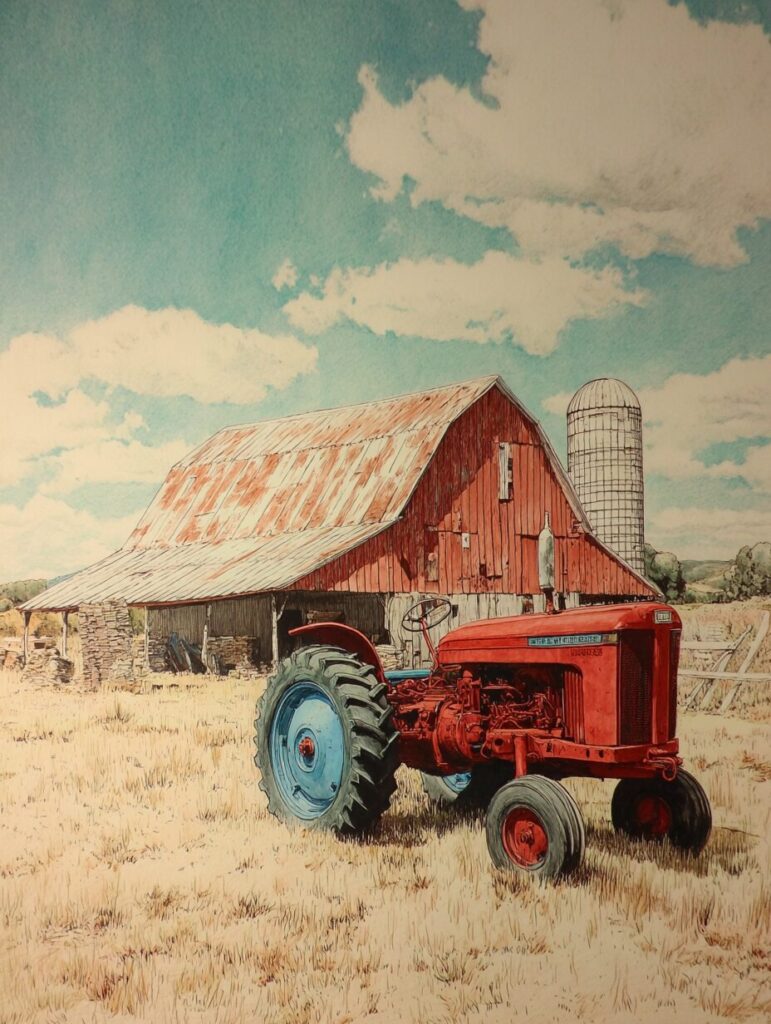 農場とトラクターの風景の塗り絵|無料塗り絵プリント/高齢者用