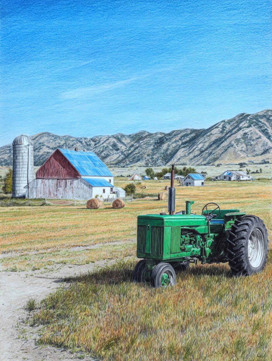 農場とトラクターの風景の塗り絵|無料塗り絵プリント/高齢者用