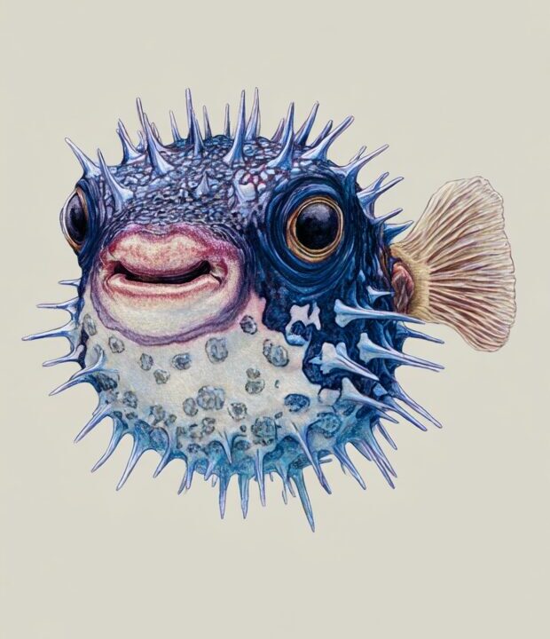 無料塗り絵:ふぐ(河豚)(大人の塗り絵)