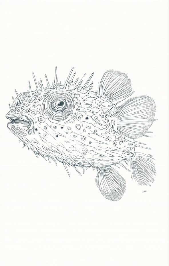 無料塗り絵:ふぐ(河豚)(大人の塗り絵)