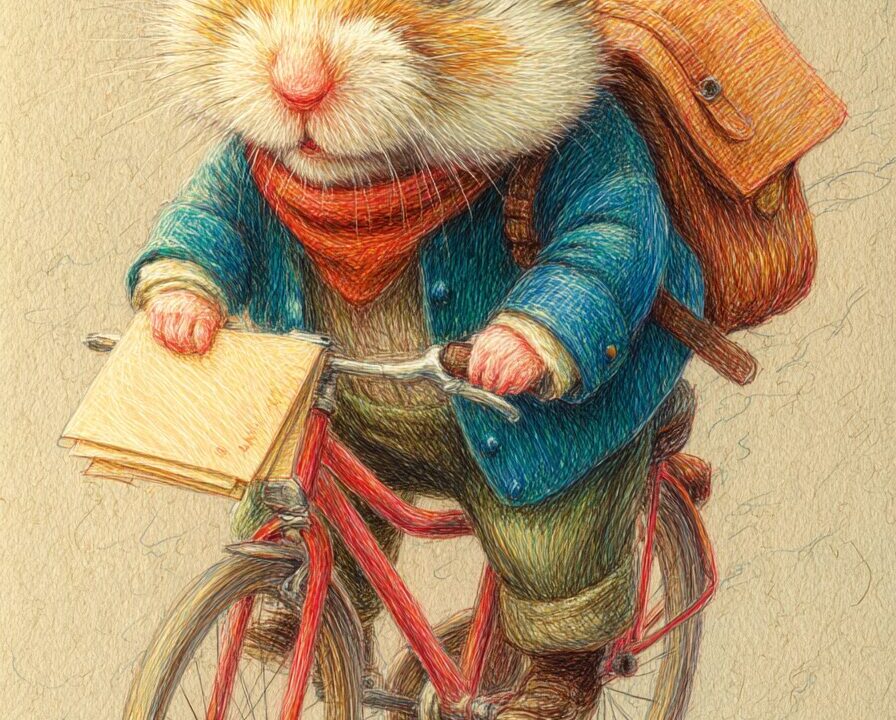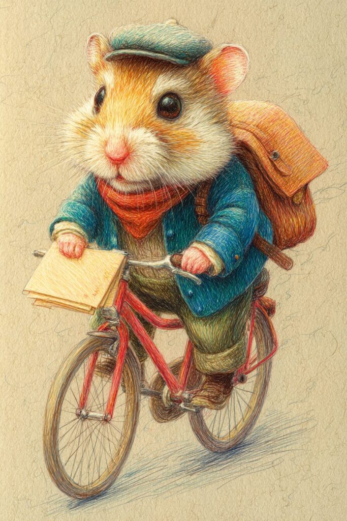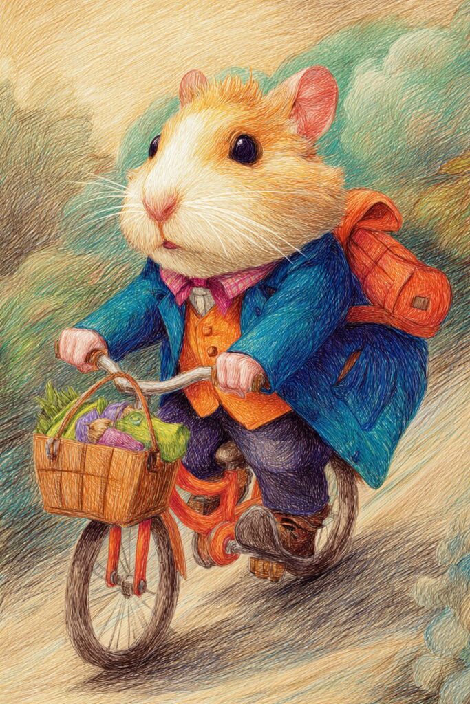 自転車に乗るハムスターの塗り絵|無料塗り絵プリント/高齢者用