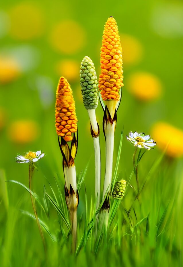 👉 春になると、地下の茎からまず「つくし」が出てきて、そのあとに緑の「スギナ」が生えてきます。