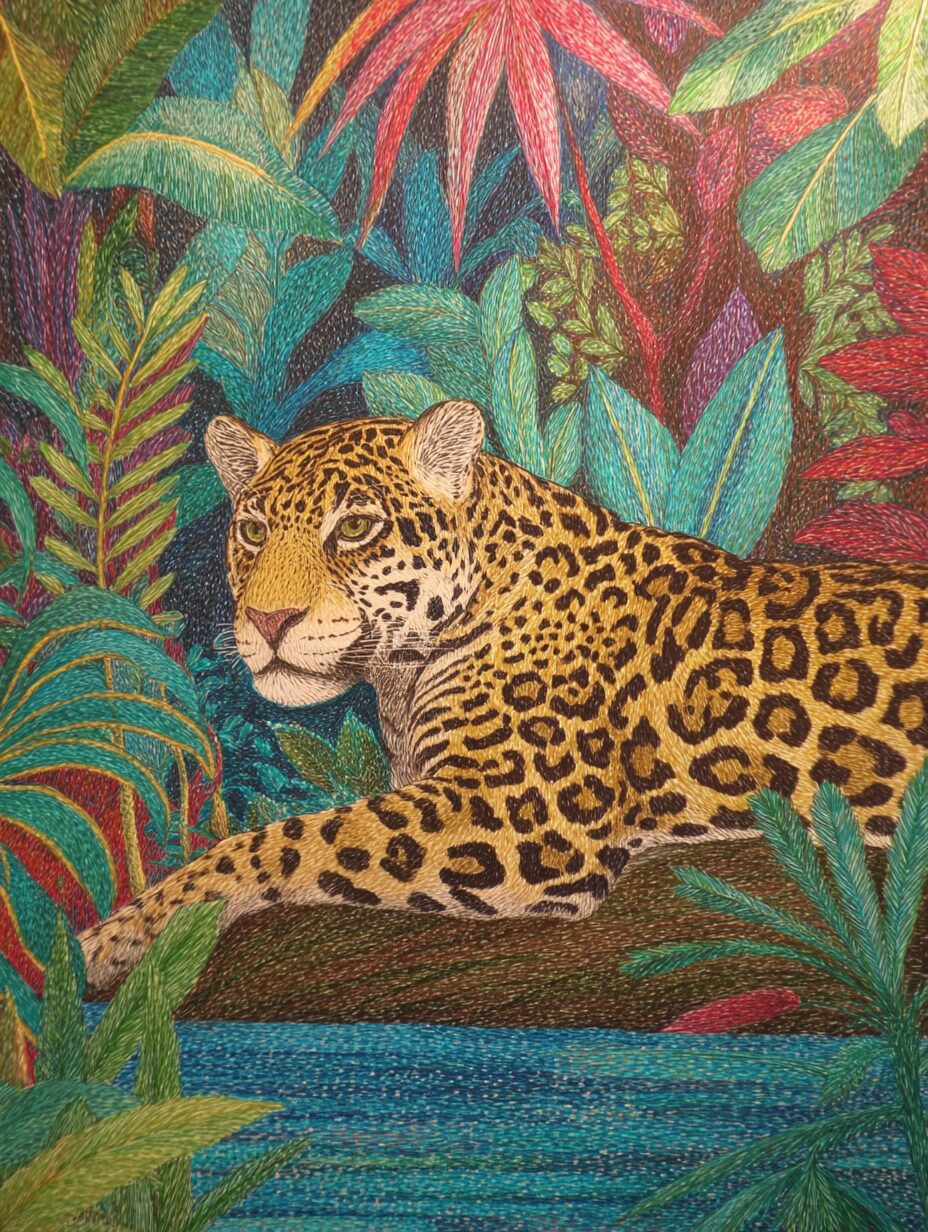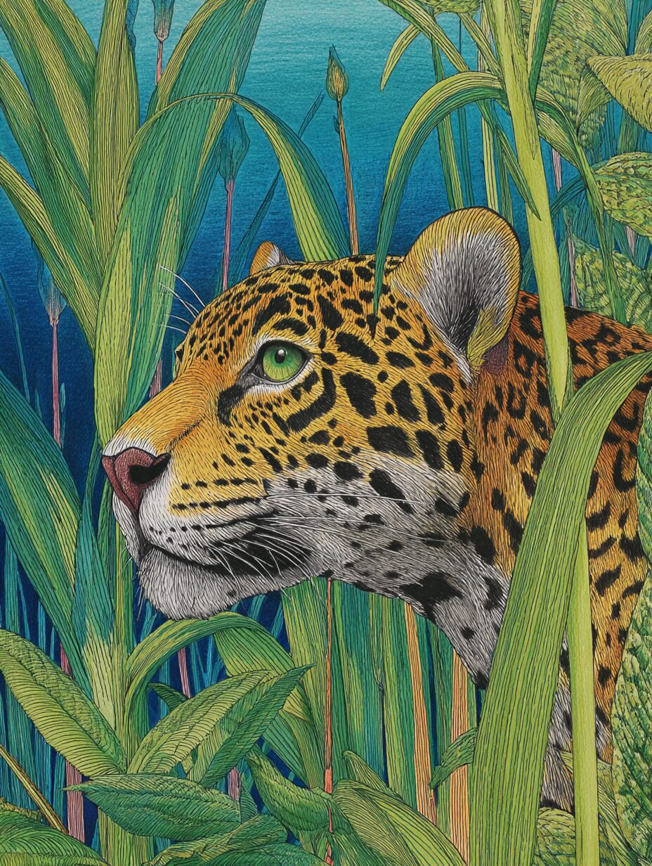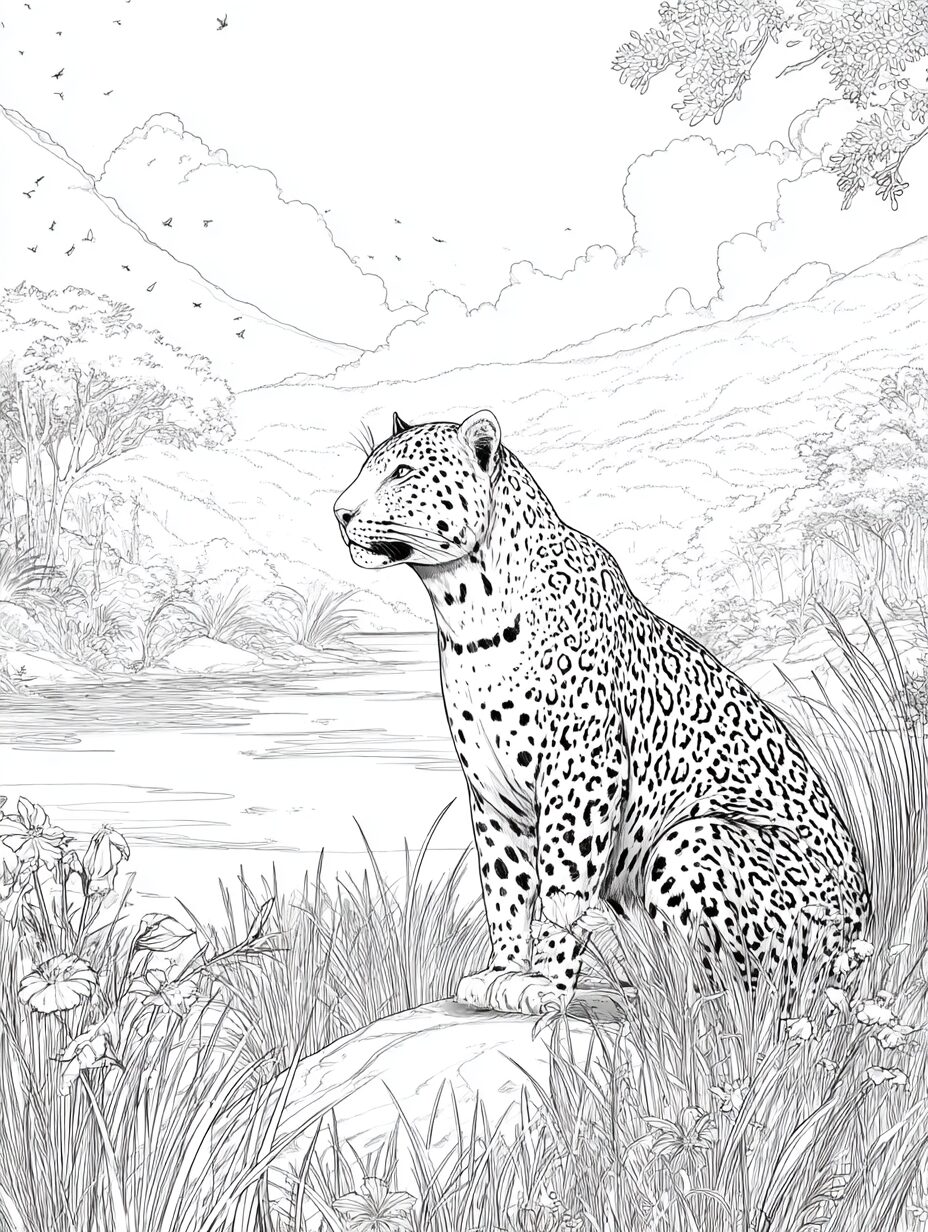 無料塗り絵:ジャガーとジャングル(大人の塗り絵)