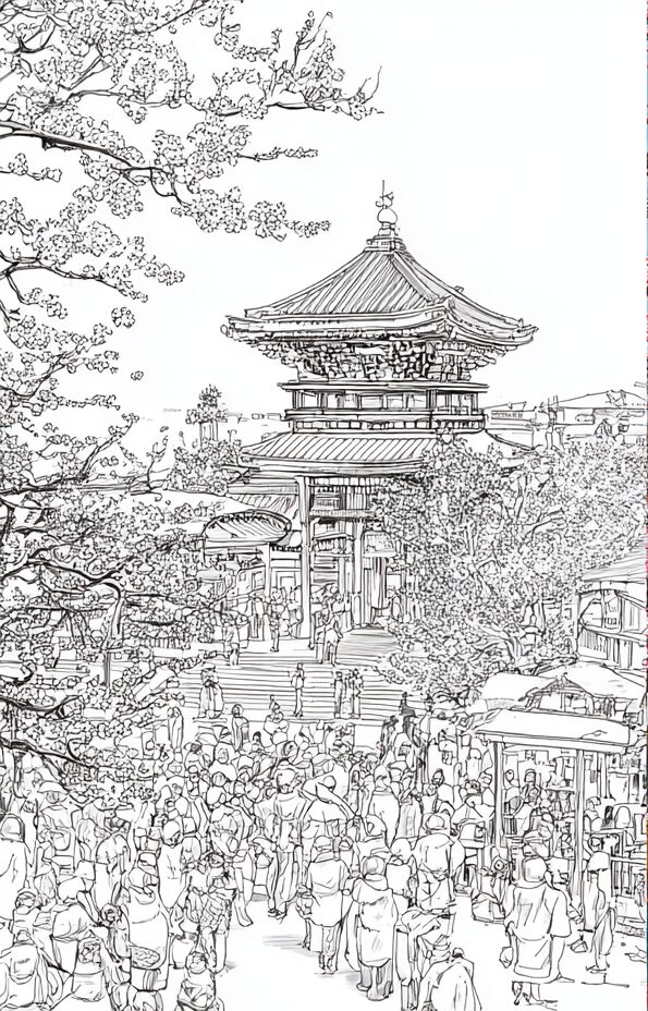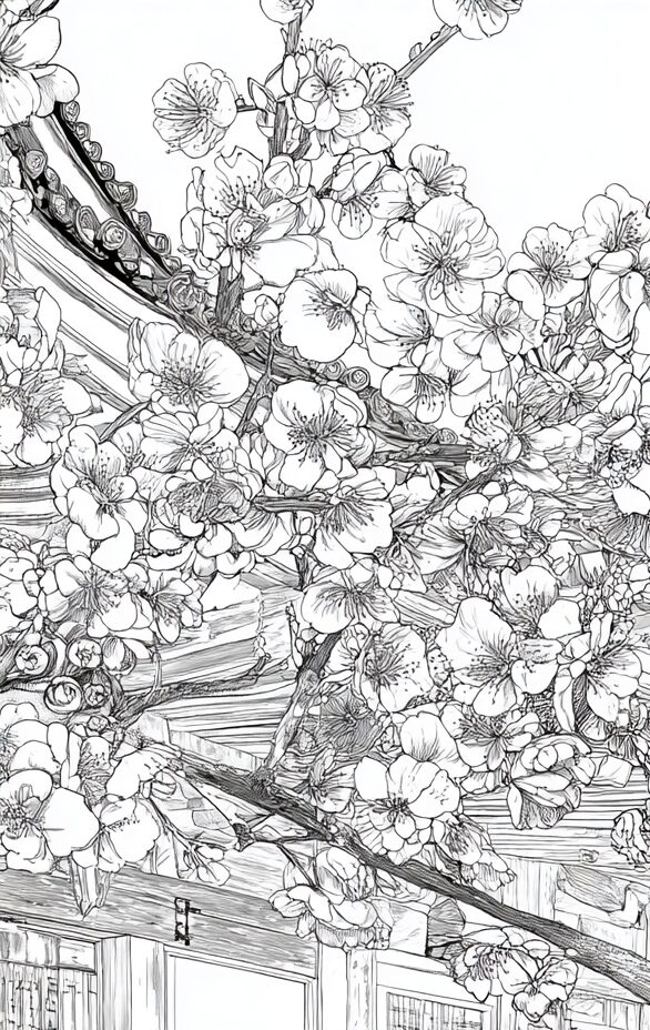 無料塗り絵:北野天満宮梅まつり(大人の塗り絵)