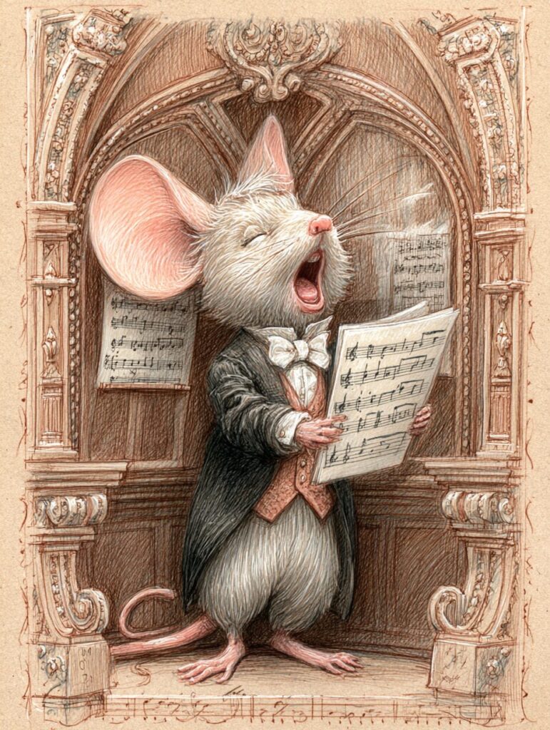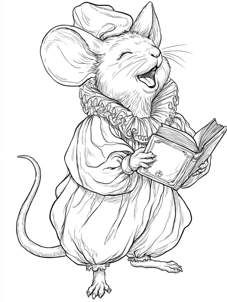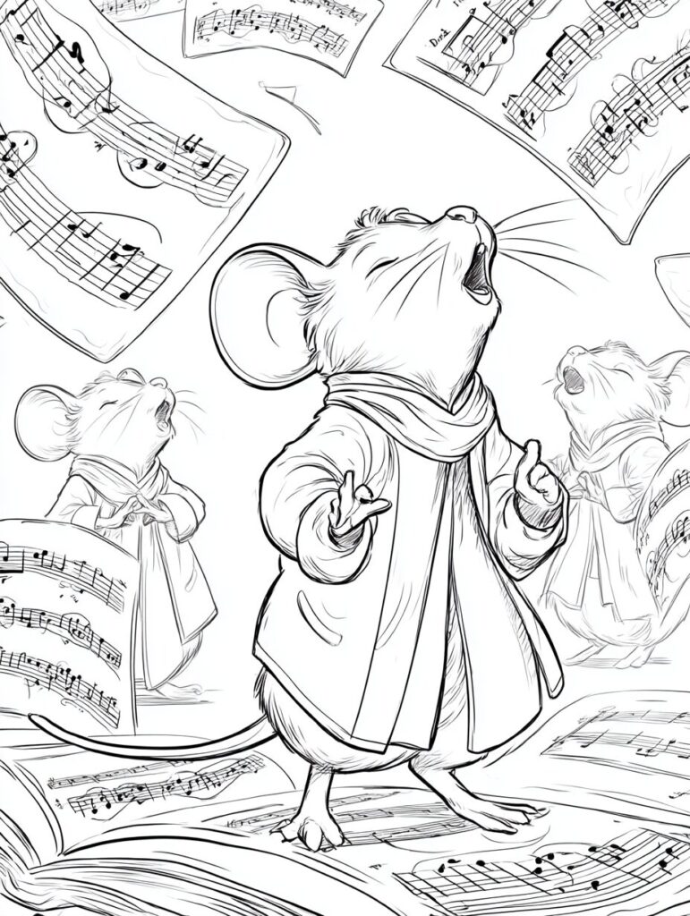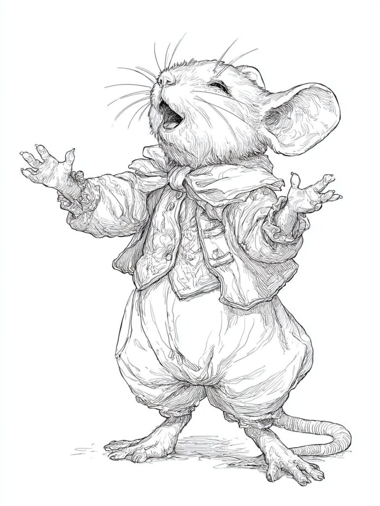 無料塗り絵:オペラを歌うマウス(大人の塗り絵)
