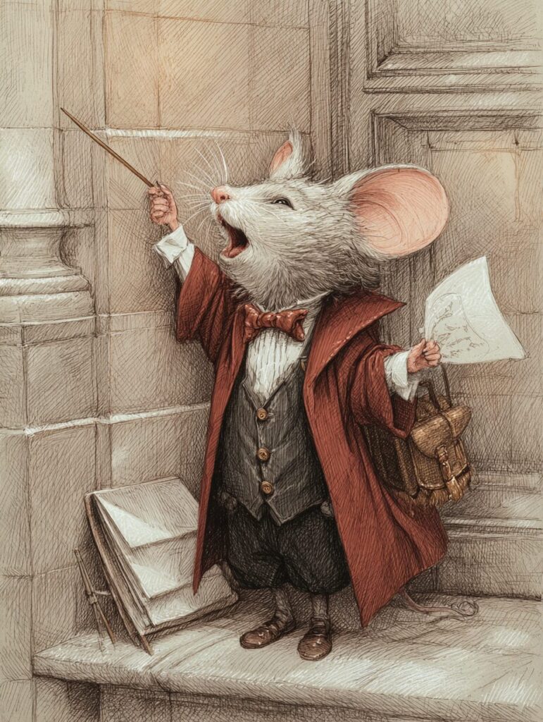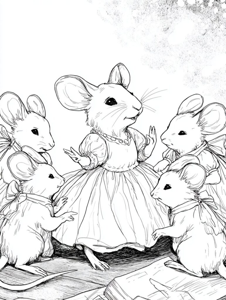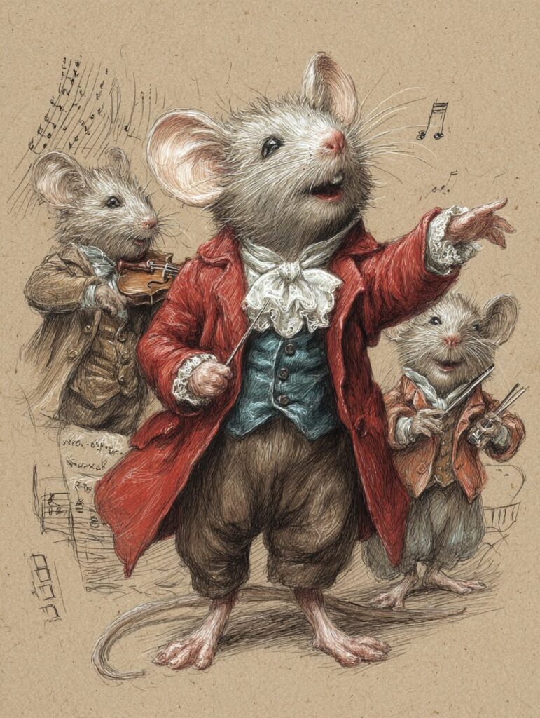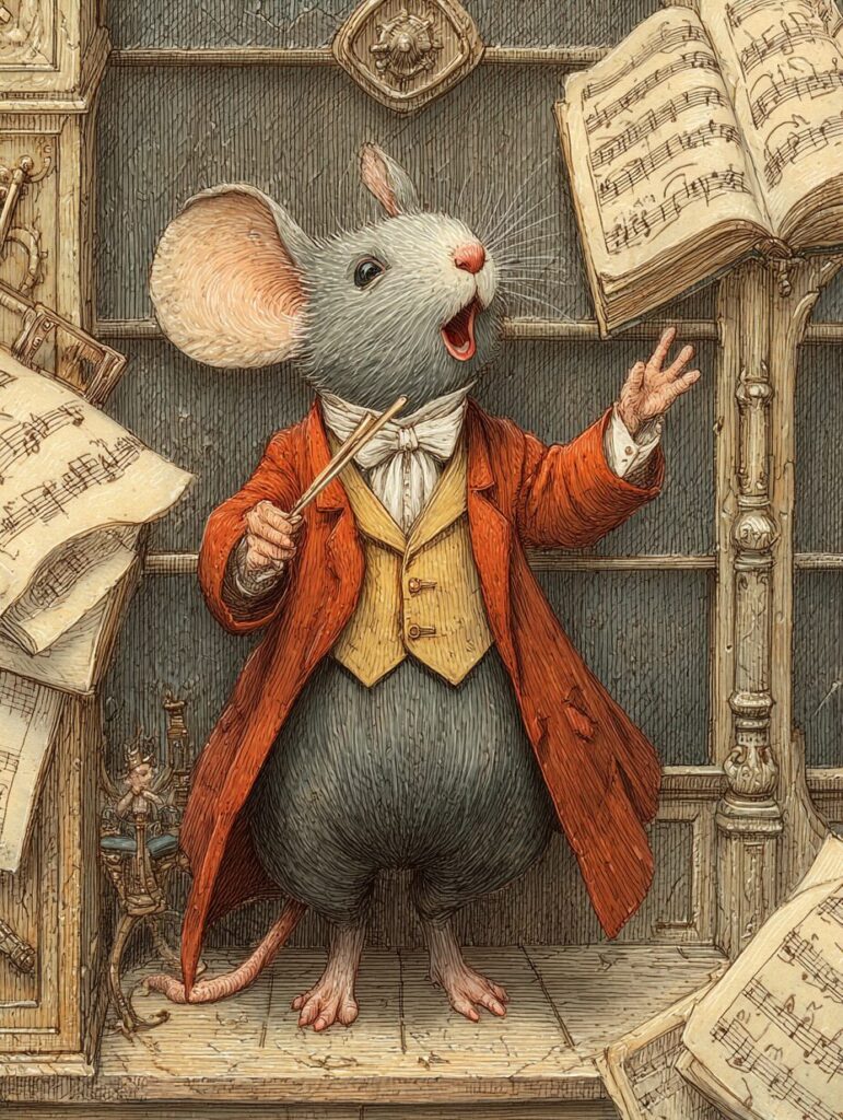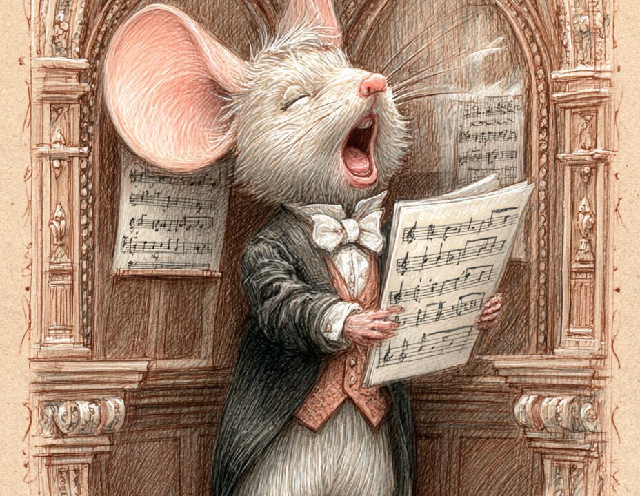 無料塗り絵:オペラを歌うマウス(大人の塗り絵)
