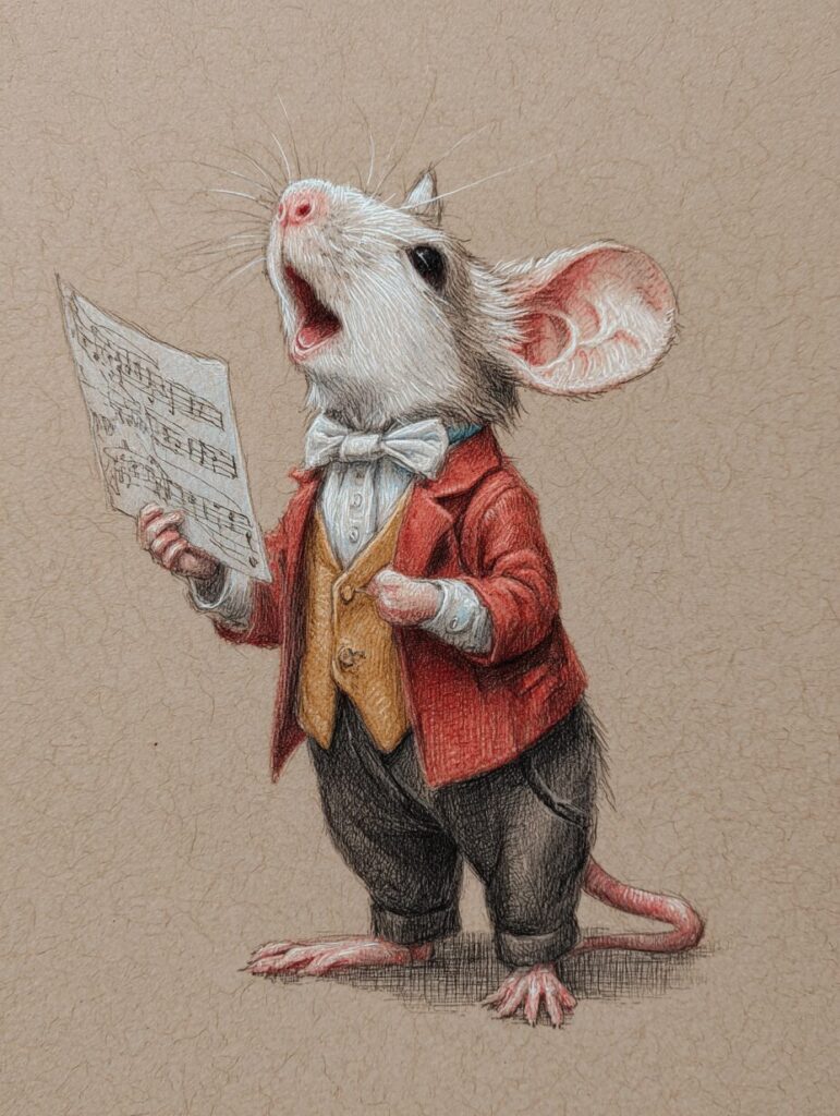 オペラを歌うマウスの塗り絵|無料塗り絵プリント/高齢者用