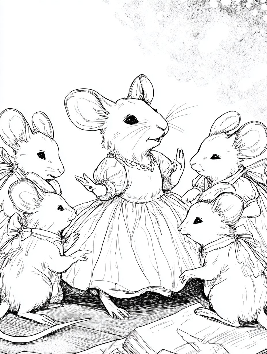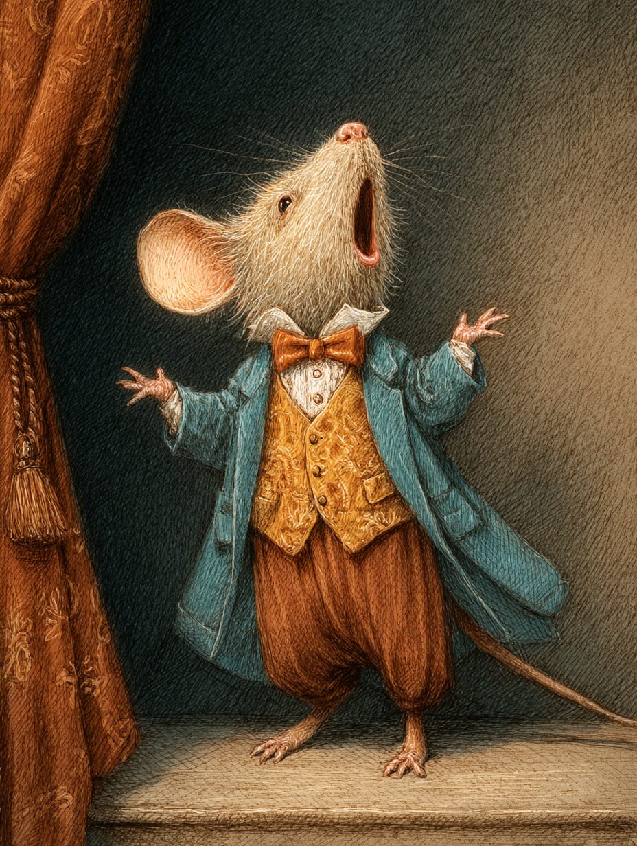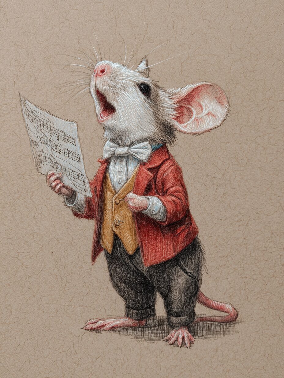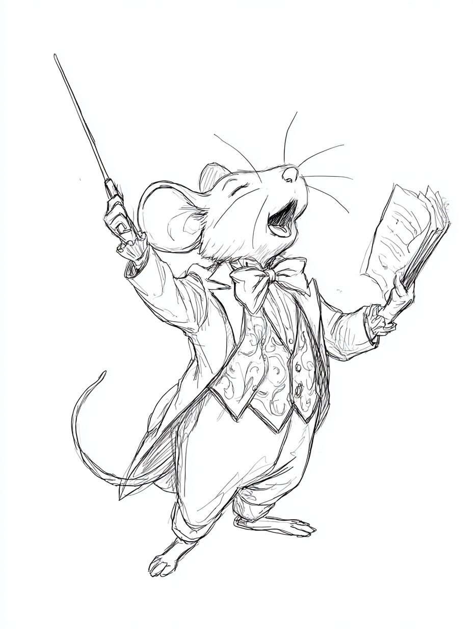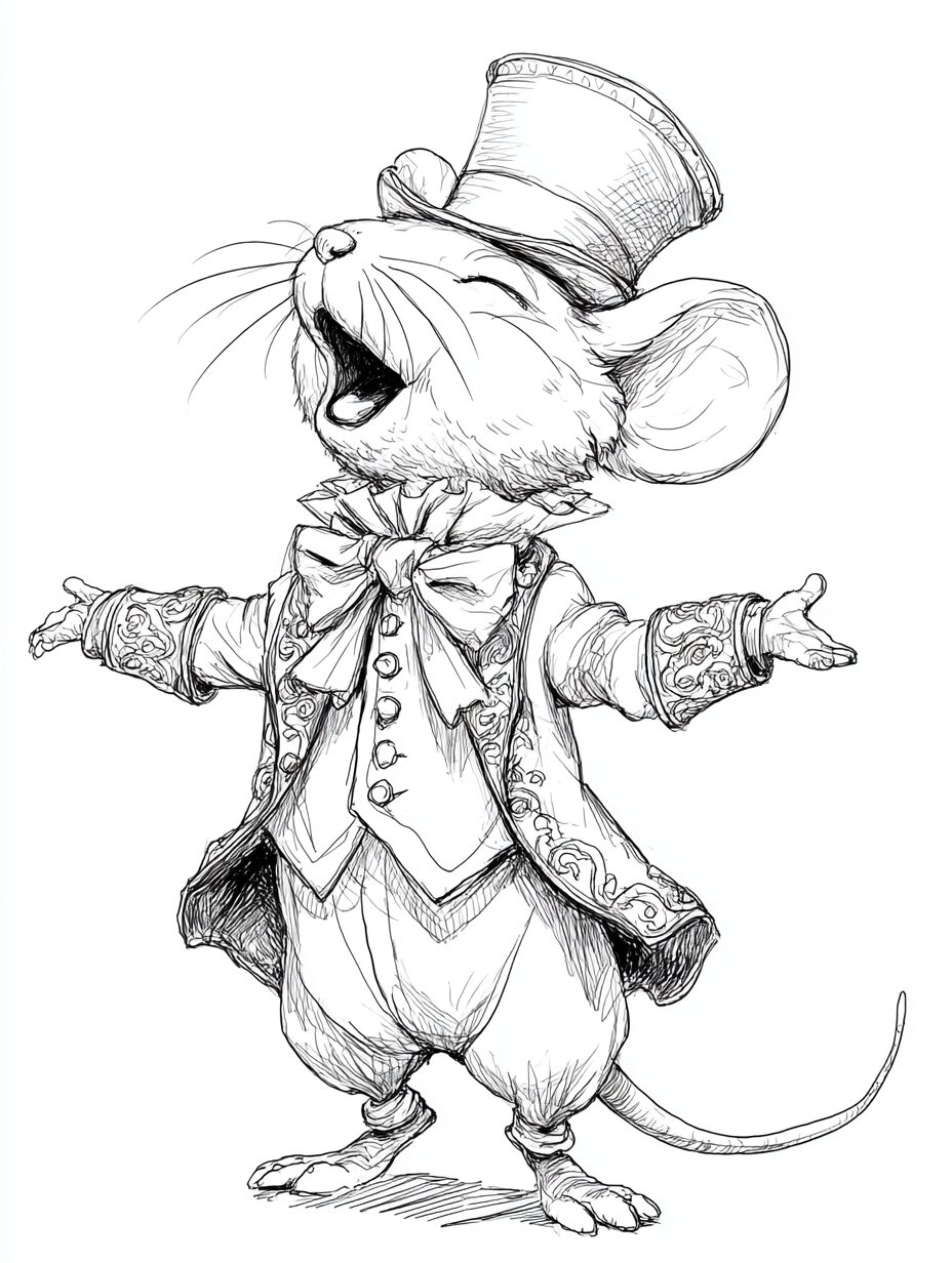 無料塗り絵:オペラを歌うマウス(大人の塗り絵)
