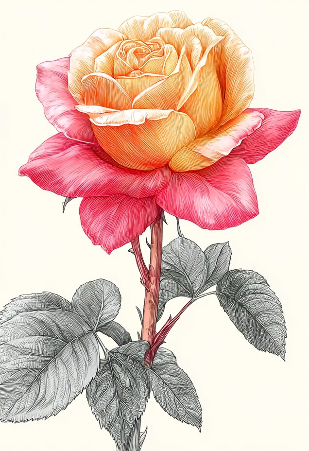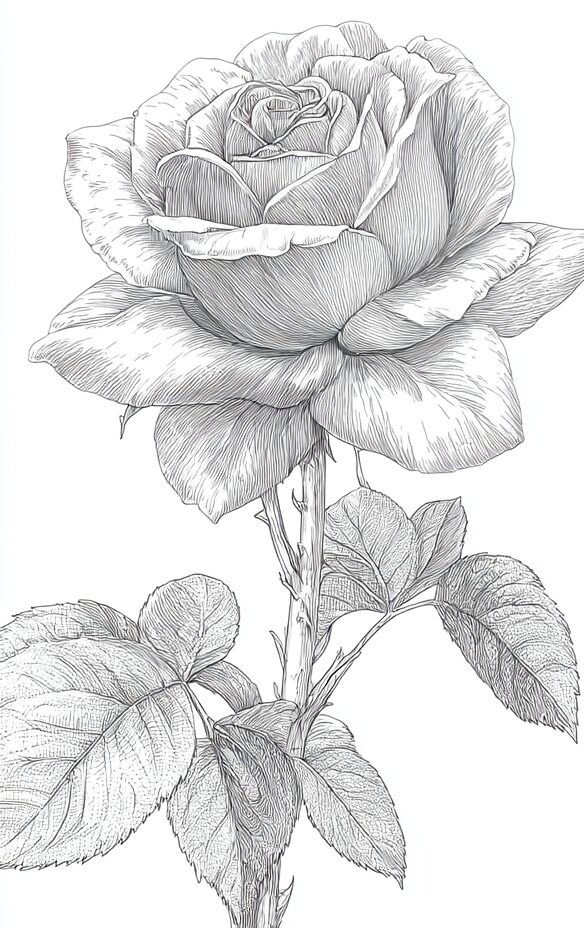 無料塗り絵:R7.10薔薇の塗り絵(大人の塗り絵)