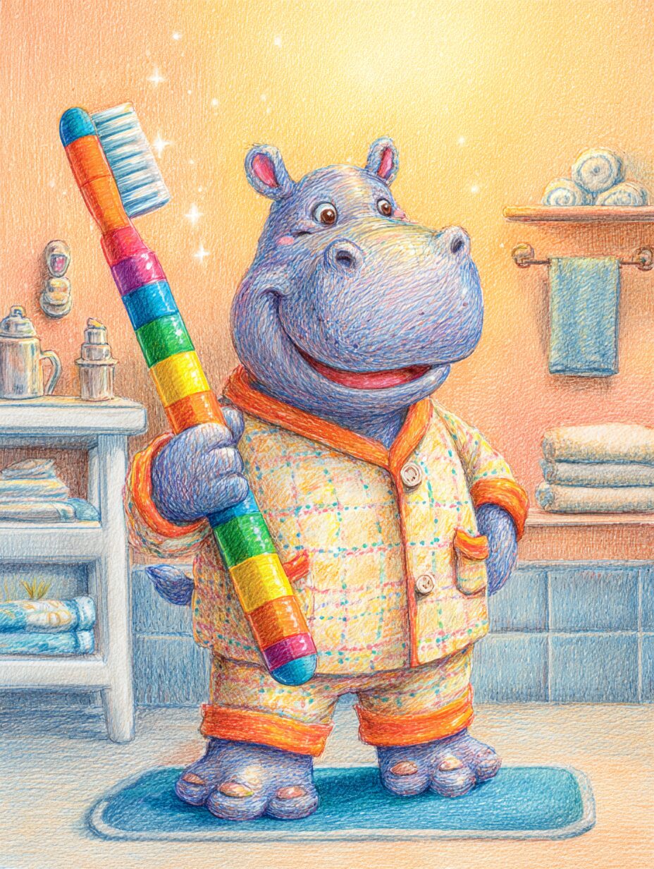 虹色歯ブラシとカバの塗り絵|無料塗り絵プリント/高齢者用