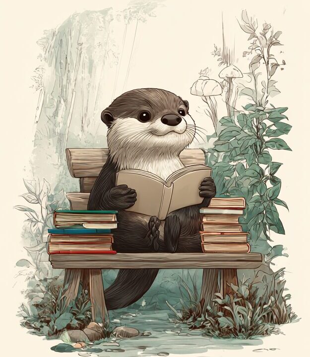 無料塗り絵:読書をするカワウソ(大人の塗り絵)