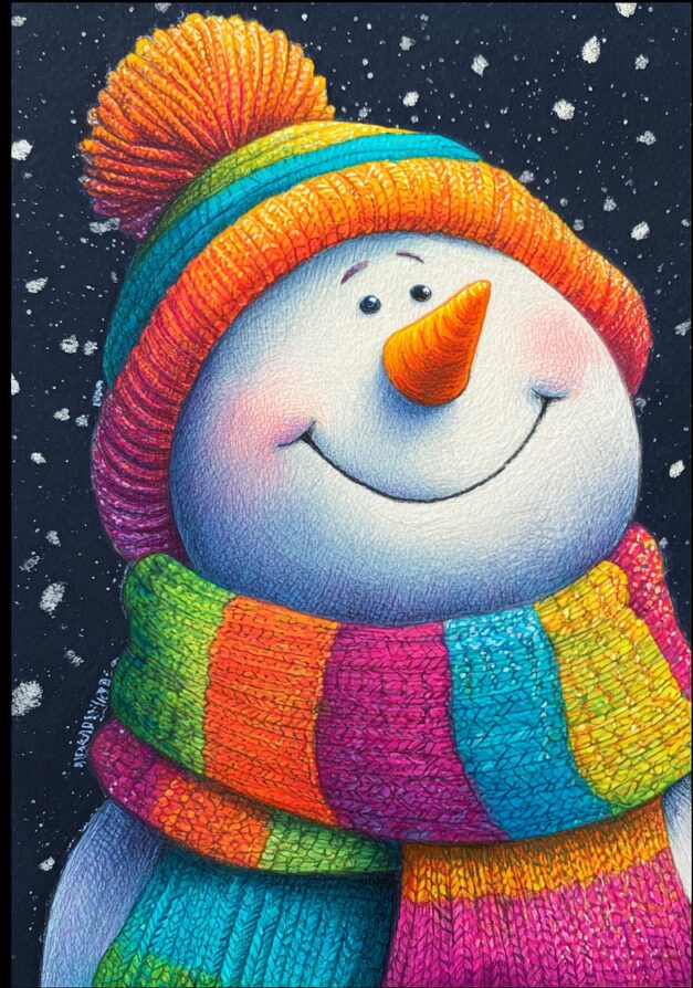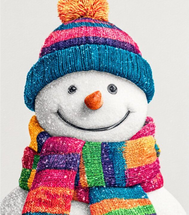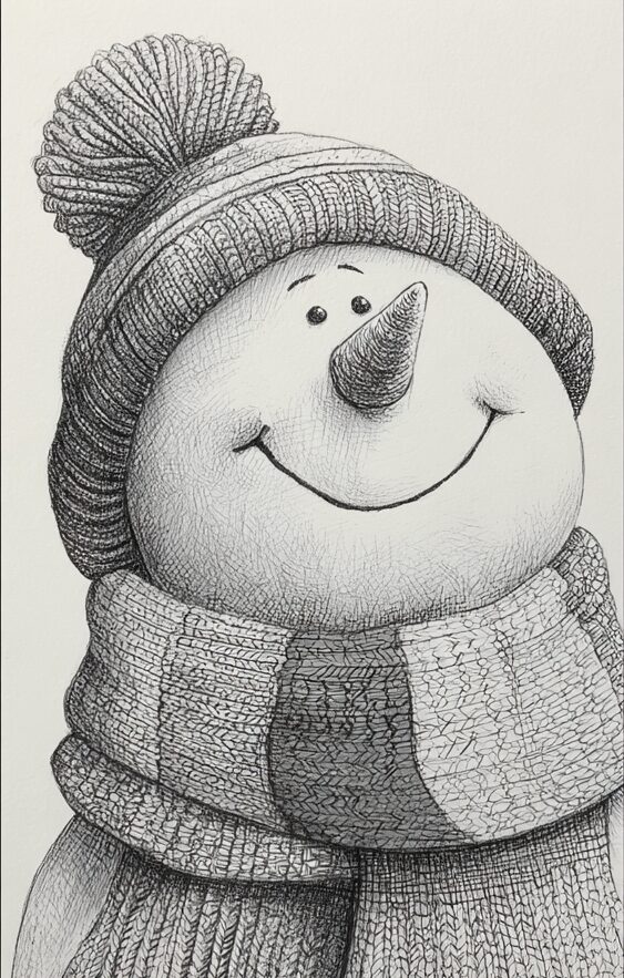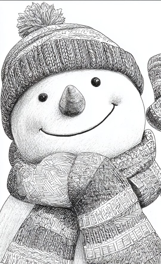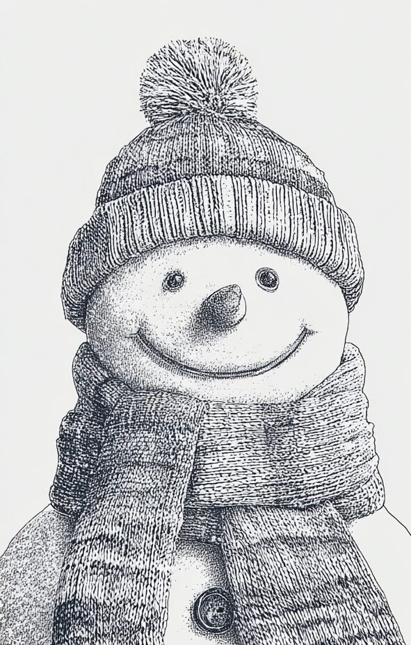 無料塗り絵:マフラーをまいた雪だるま(大人の塗り絵)