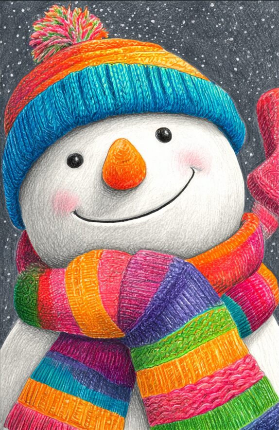 マフラーをまいた雪だるまの塗り絵|無料塗り絵プリント/高齢者用