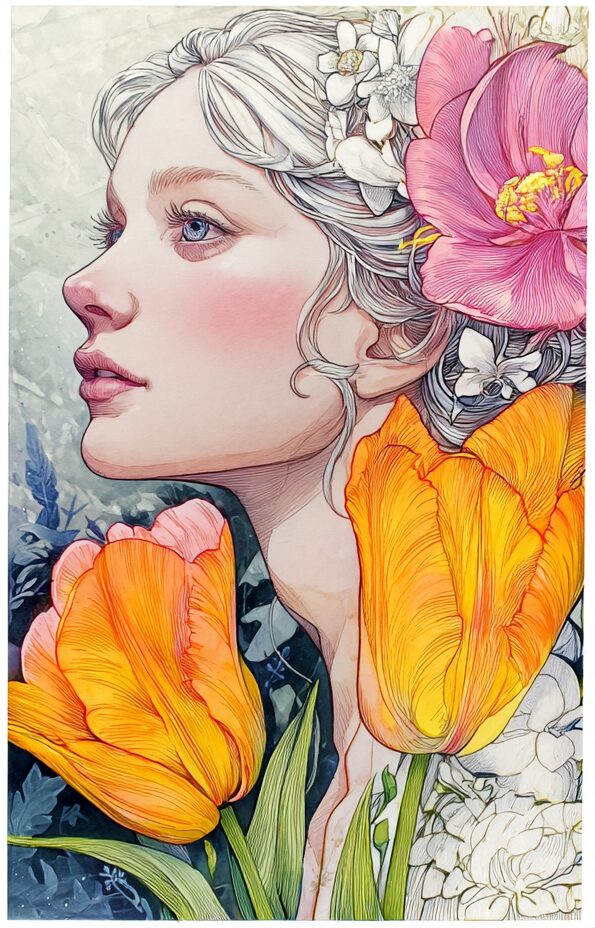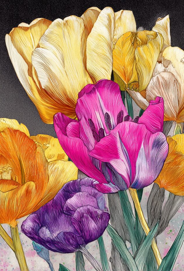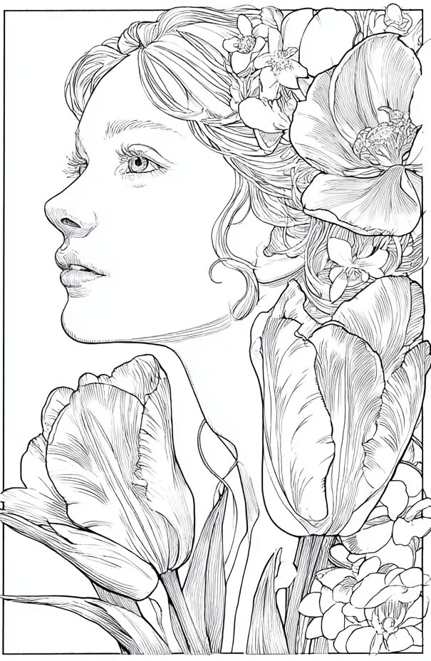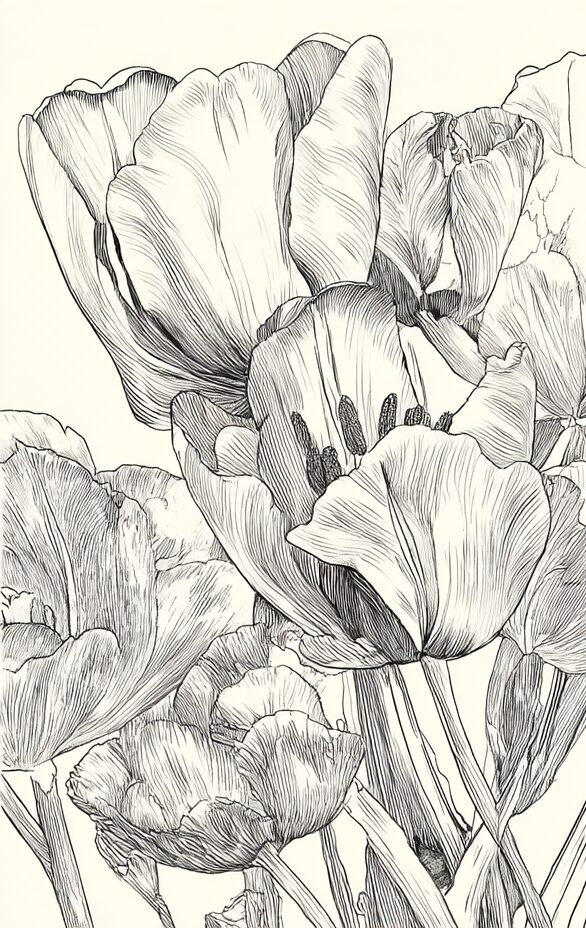 無料塗り絵:チューリップアンジェリケ(大人の塗り絵)